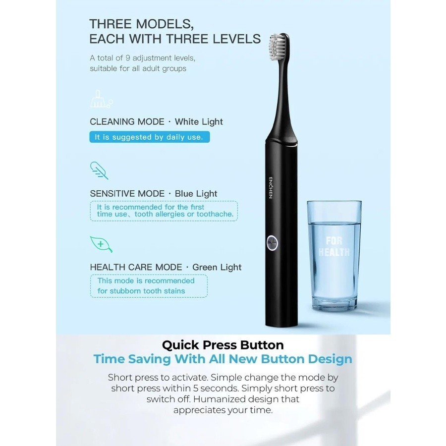 Enchen Aurora T+ Toothbrush DuPont Bristles HSM Sonic Cleanse, 3 Modes High Frequency IPX7 Waterproof Personal Care