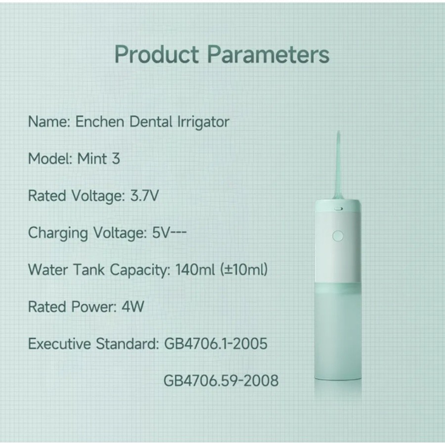 Enchen Mint 3 Dental Flosser Oral Irrigator IPX7 Waterproof High Frequency Pulse 3 Speed Cleaning Mode