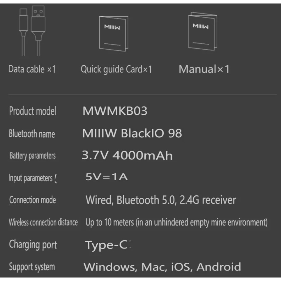 MIIIW BlackIO98 Customized Mechanical Keyboard Game Electric Competition MX Jellyfish Axis Wireless Gaming Keyboard RGB