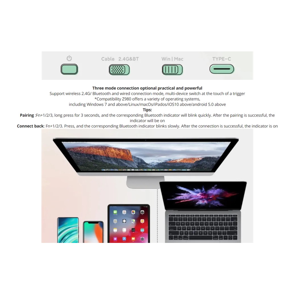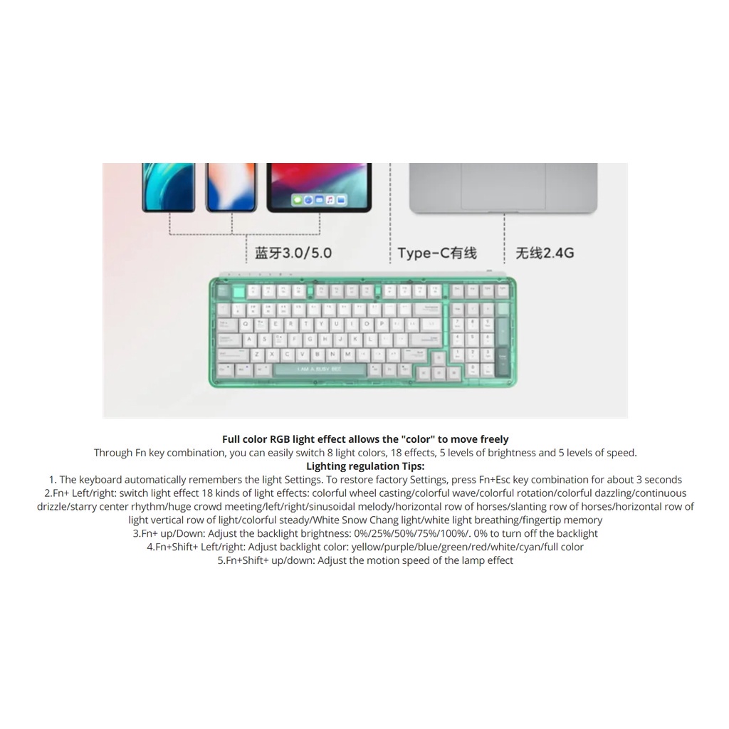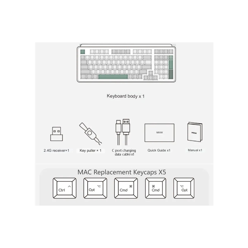 Miiiw Mechanical Keyboard Z980 Gaming Office Keyboard Three-mode Connection With RGB Lamp Effect 2.4G Bluetooth Wireless