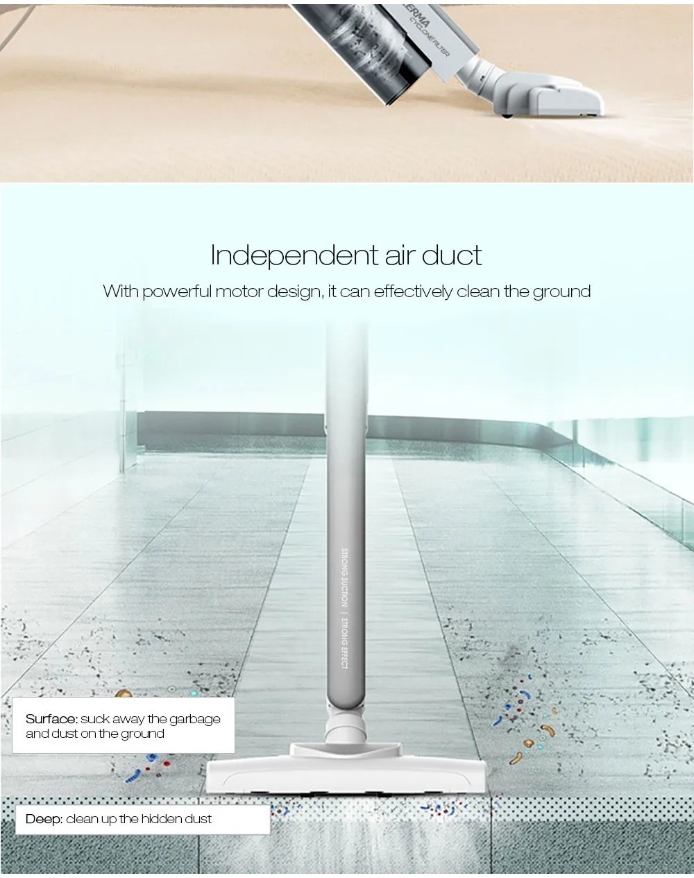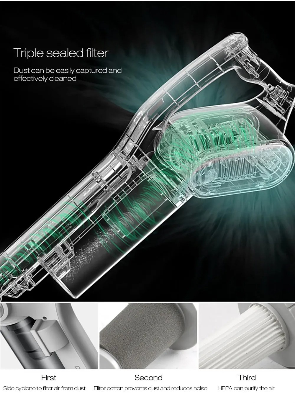 📌 Strong & Efficient Suction – 15,000Pa with 600W high-speed motor (up to 38,000 rpm) for dust, hair, crumbs, and allergens