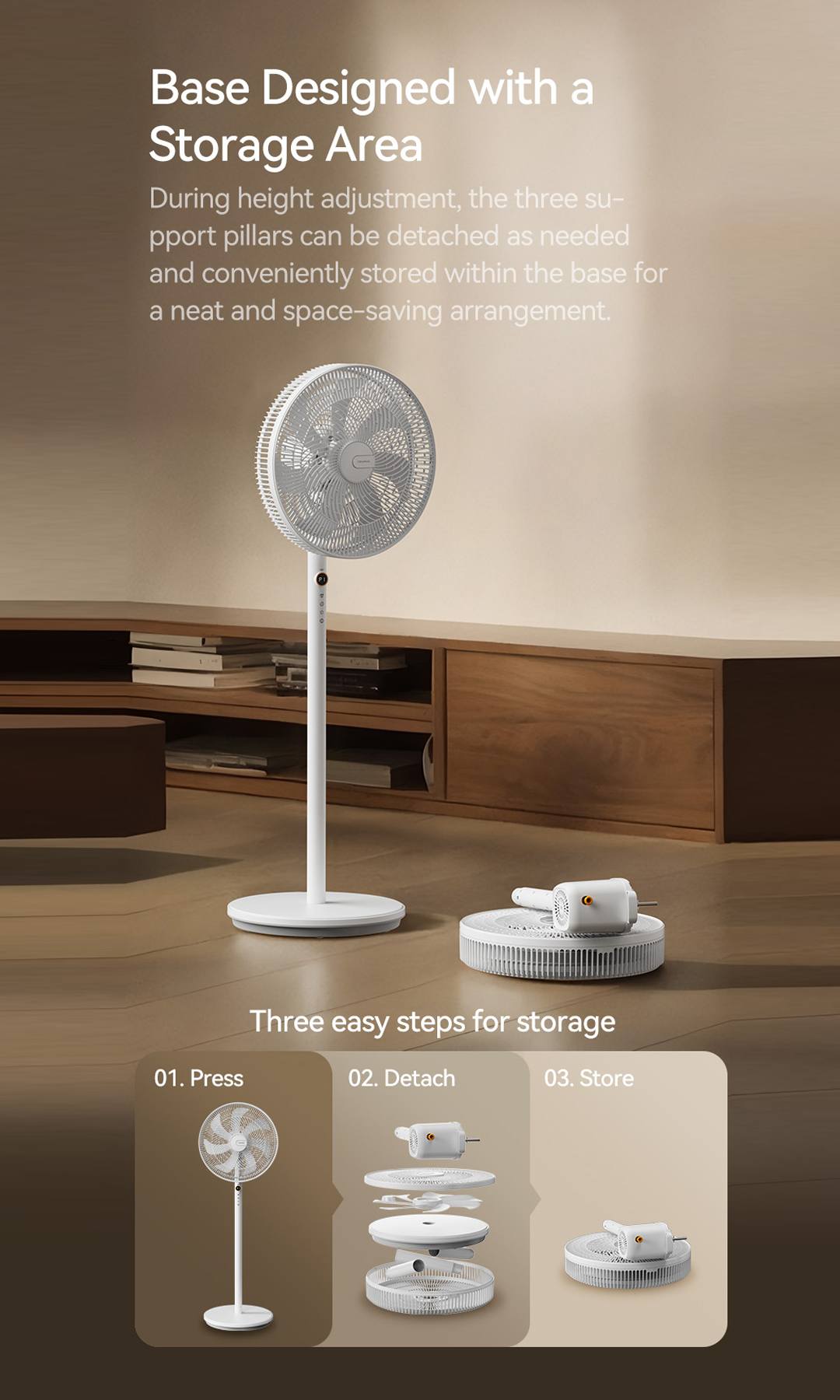 📌 Built-in Storage Base – Detachable support pillars store neatly inside the base to save space