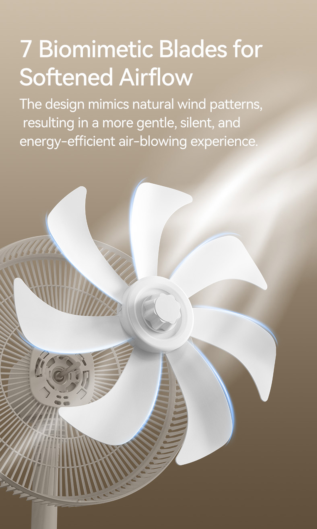 📌 7 Biomimetic Blades – Wing-shaped blades mimic natural wind for gentle, quiet, and comfortable airflow