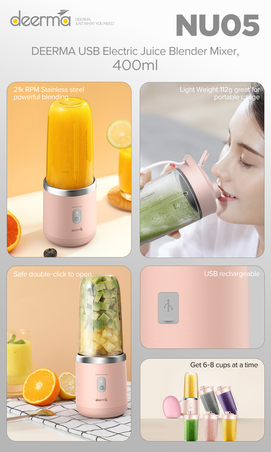 📌 400 mL Large Capacity – Up to 8 Cups per Charge