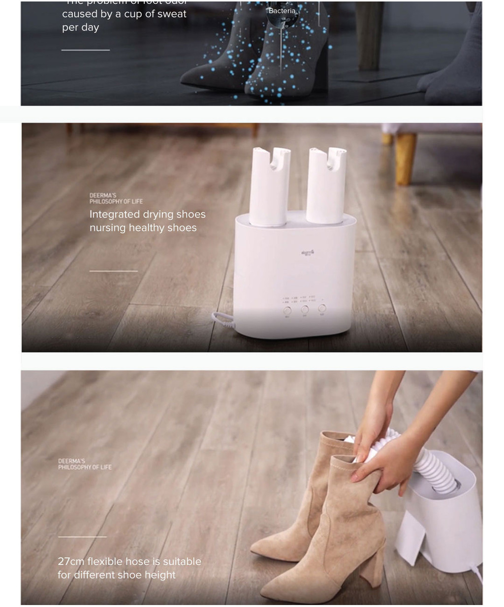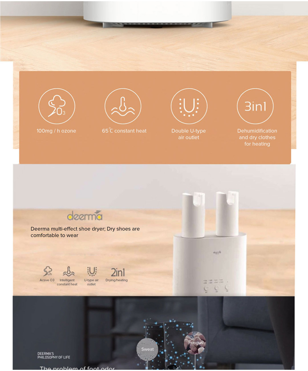 Built-in ozone generator removes fungi and bacteria, preventing moisture-related odors and athlete’s foot.