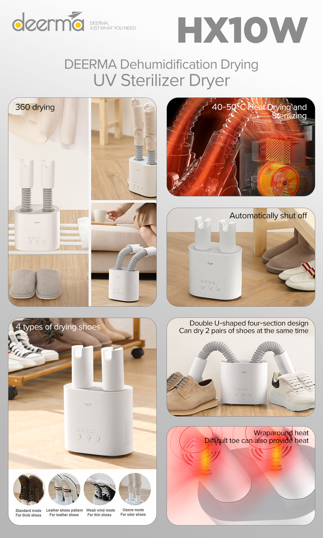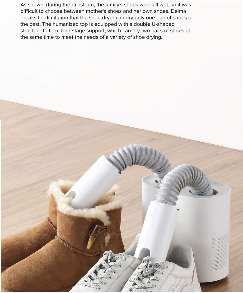 Dries two pairs of shoes simultaneously, saving time and energy while extending footwear life.