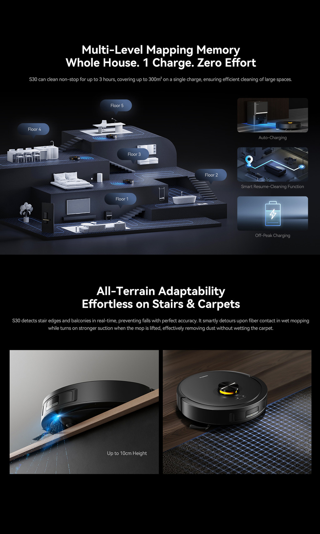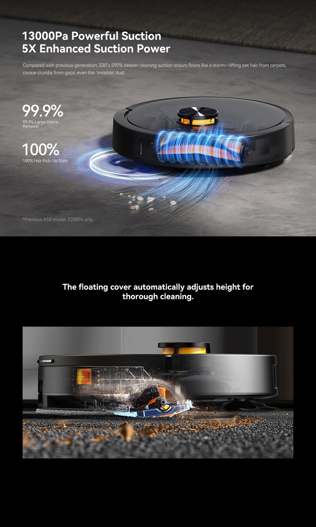 📌 Dust Collection: Auto-empty base with 3L dust bag (up to 4 months)