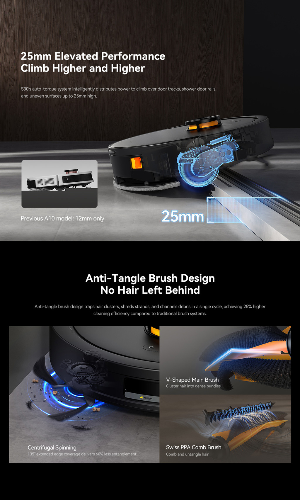 📌 Anti-Tangle V-Brush – Picks up hair with 60% less tangling; 135° edge coverage for thorough cleaning